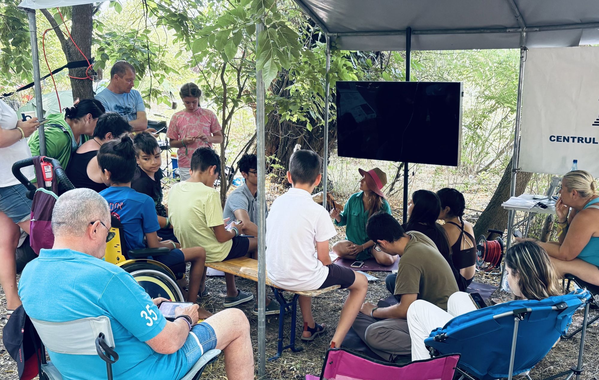 All workshops started with a philosophical text as a stimulus, which was read either on the participant’s mobile devices or on the digital screen available in the CCS tent. The philo café sessions were open to everyone, regardless of age or professional background. For most participants it was their first contact with philosophy as a living, accessible practice.